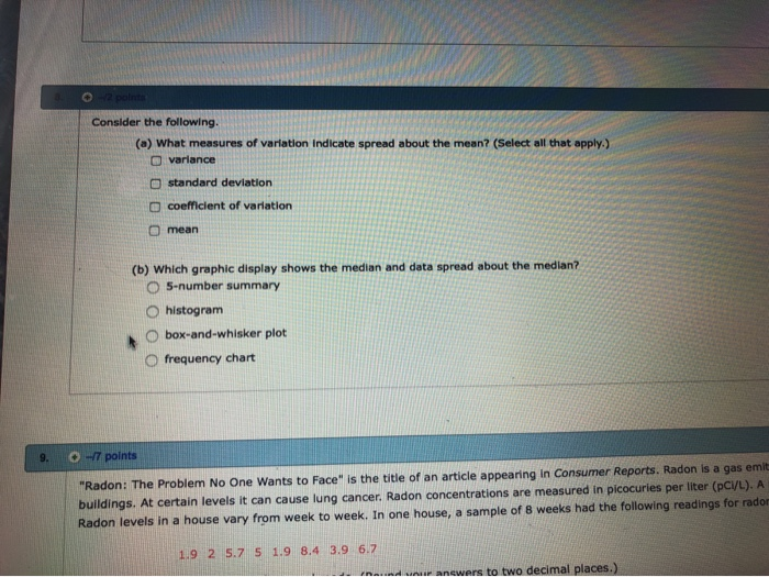 Solved Consider The Following A What Measures Of Variation Chegg Com